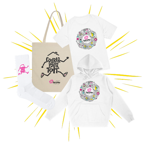 Et si vous couriez avec solidarité ET classe à la fois ? C'est possible, grâce à notre super gamme de t-shirts, sweats, chaussettes, totebag... officiels Courir pour Toit 2026 😎 En coton bio ou matière recyclée et made in France, oui oui !
